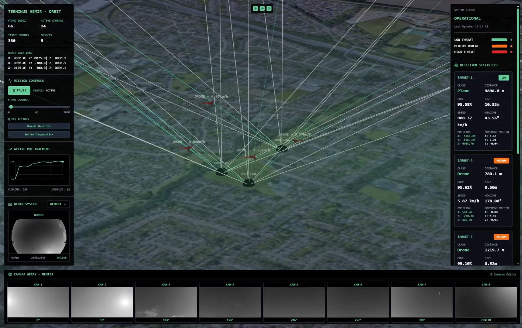 REVOLUTIONARY 8-CAMERA ARRAY PROVIDING 360° SURVEILLANCE WITH ZERO BLIND SPOTS AND CONTINUOUS THREAT MONITORING PROTOCOLS.